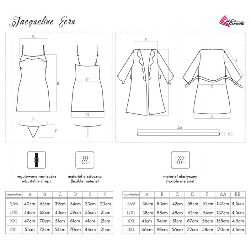 LIVCO CORSETTI FASHION - JACQUELINE LC 90249 MORGENMANTEL + HEMD + PANTY ECRU L/XL