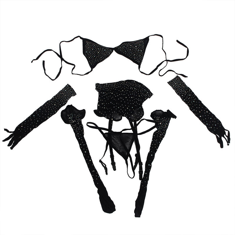 SUBBLIME - 952174 NETZ-BODYSTOCKING MIT HANDSCHUHEN UND DIAMANTEN SCHWARZ EINE GRÖSSE