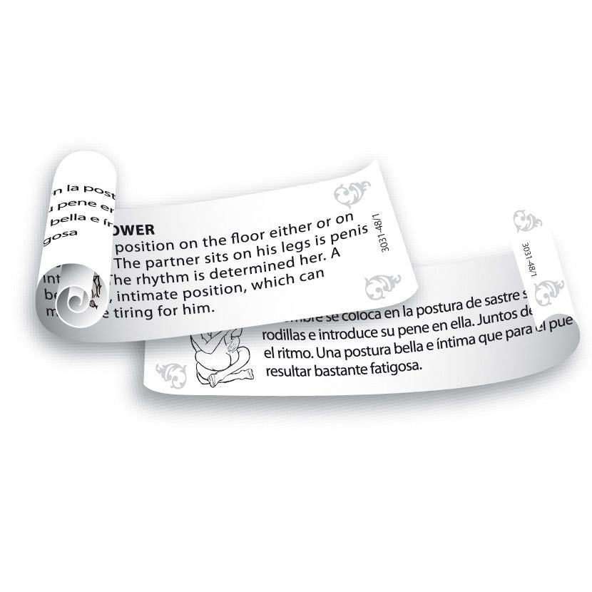 Eine Sensation für Sie und Ihren Partner! Mit der Pinzette pflücken Sie eine Schriftrolle aus dem Herzen. Welche erotische Position wirst du ausprobieren? Wird es die Göttinnenfahrt, das Liebesboot oder die Anbetung sein? Nehmen Sie die Herausforderung an und erleben Sie gemeinsam Vergnügen und Intimität.